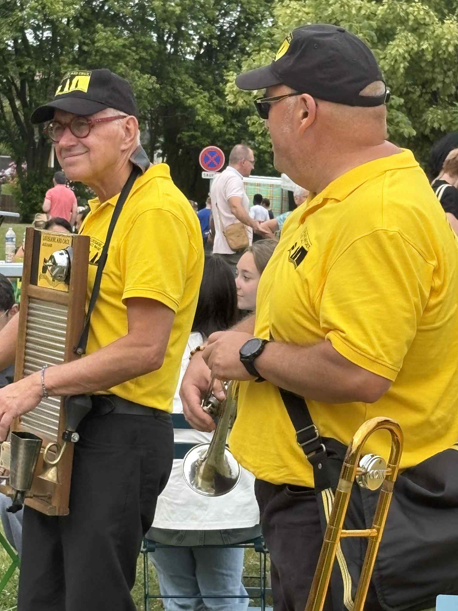 Le 27/06/25, le Louisiane And Caux Jazz Band a joué avec sa formation déambulation pour l'inauguration du Parc Henri Odièvre de Saint Romain de Colbosc.