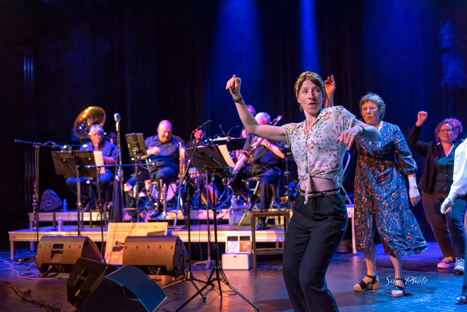 Le 23/05/25, le Louisiane And Caux Jazz Band accompagné de sa chanteuse Camille Delcroix et de l'association LH Lindy Hop a présenté son spectacle Passport To Swing à la Ficelle de Goderville.