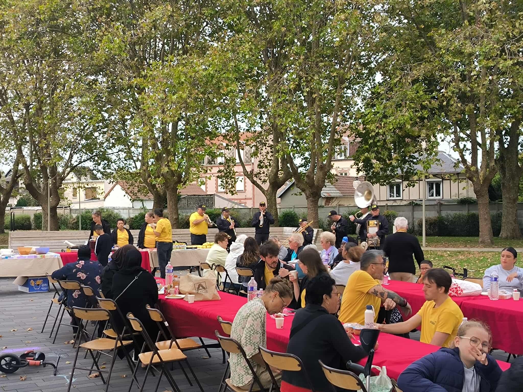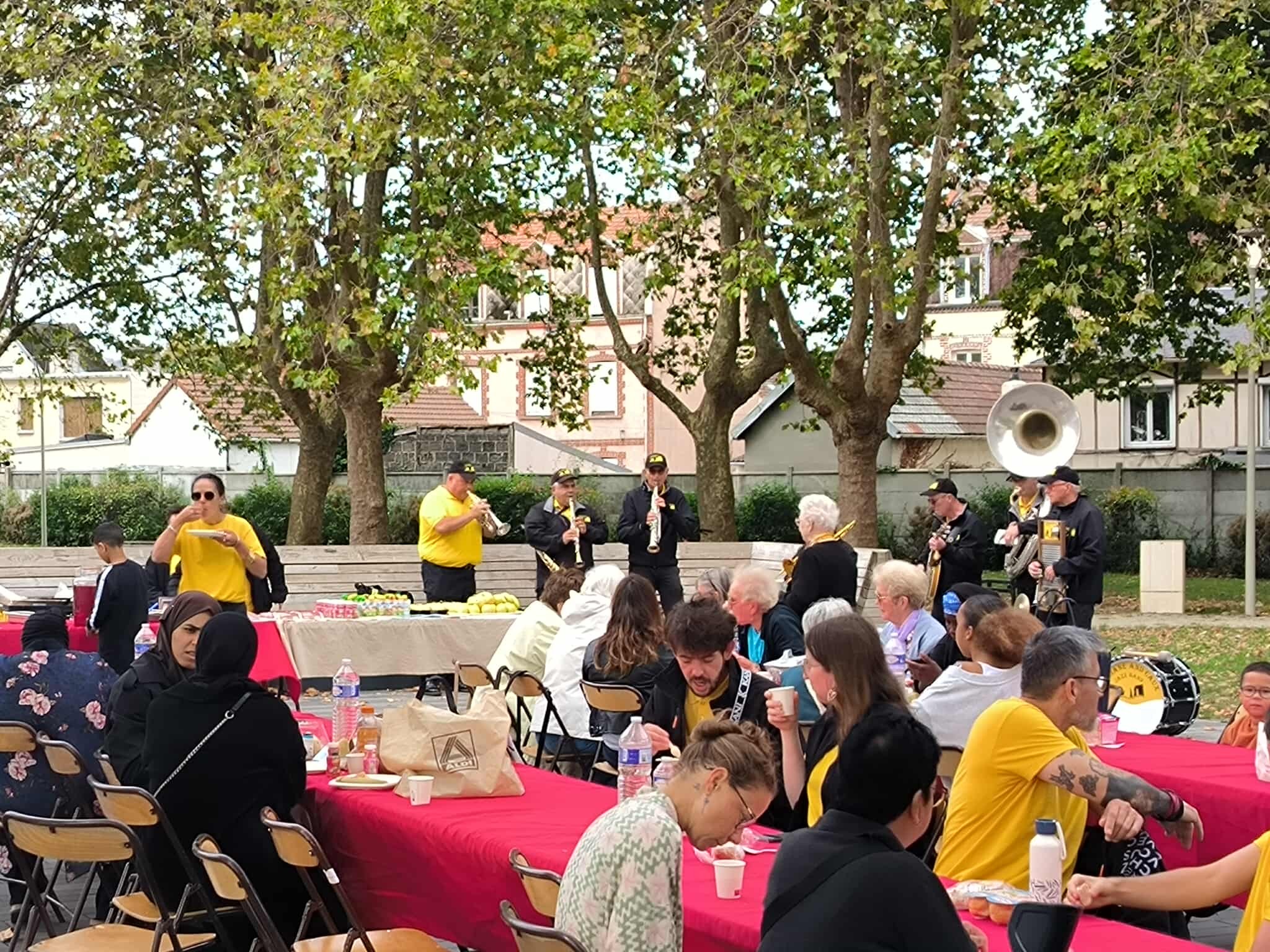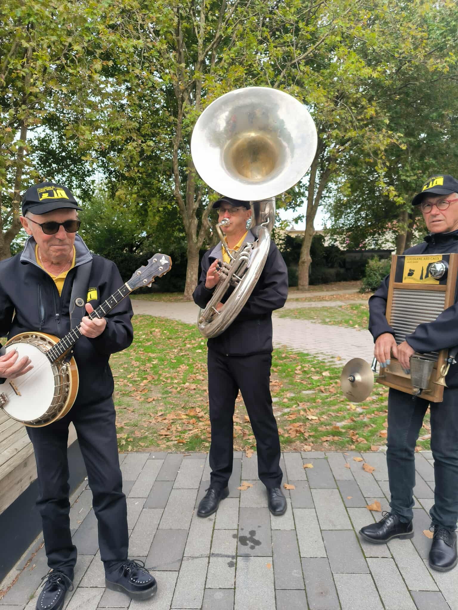 Le 10/09/25, le Louisiane And Caux Jazz Band à joué en formation déambulation pour la porte ouverte de la Fabrique Quartiers Sud du Havre.