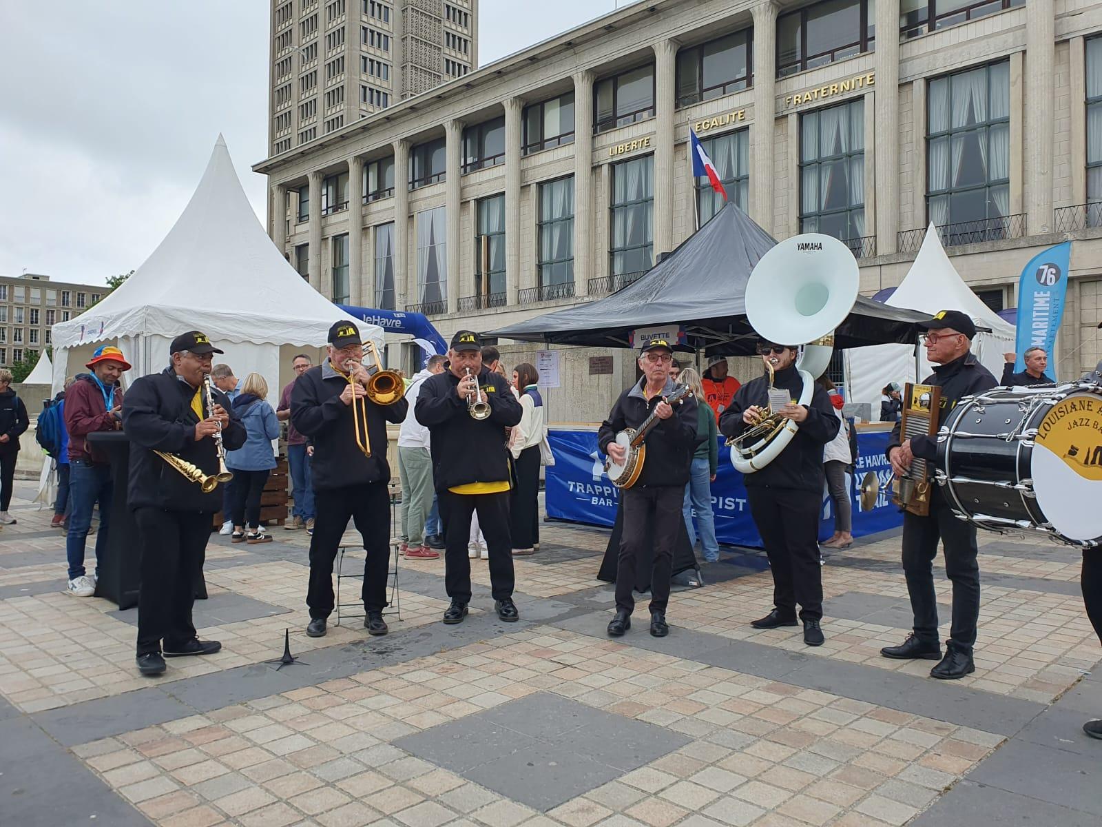 Le 24/05/25, le Louisiane And Caux Jazz Band a joué en déambulation pour l'Urban Trail du Havre.